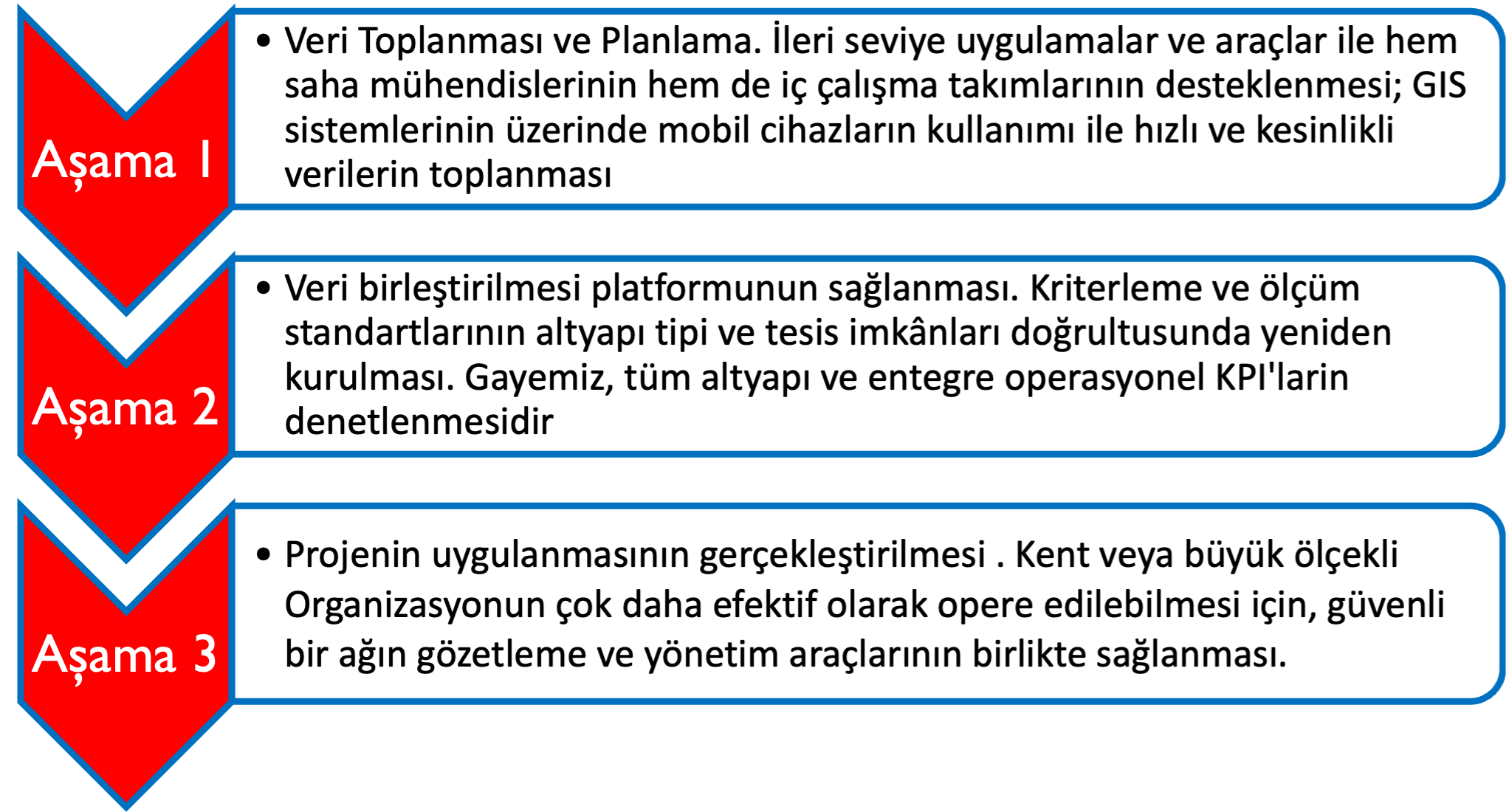 Akıllı Şehir Enerji Master Plan Çözümü 3 aşamalı bir bakış açısı sunmaktadır.